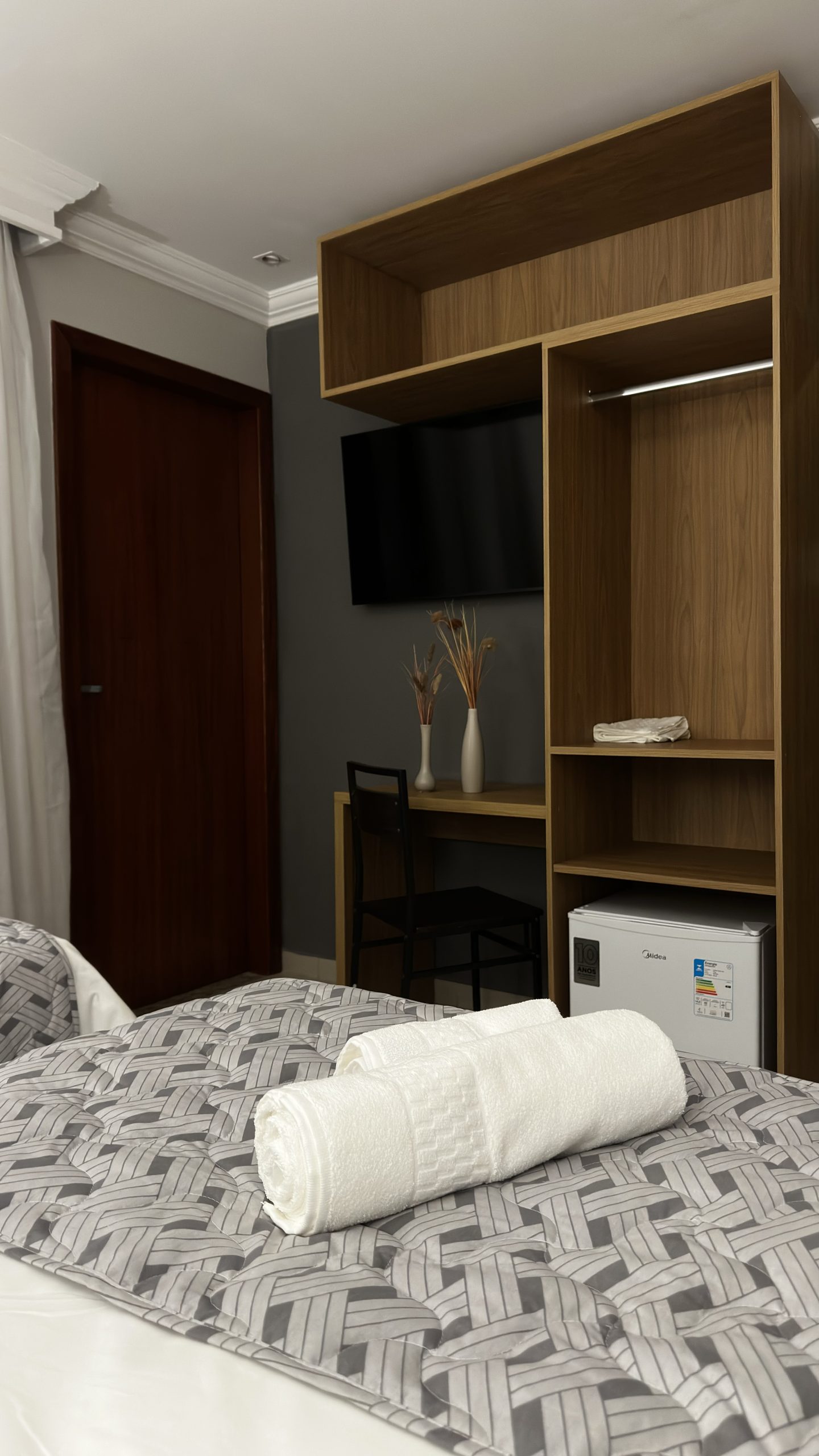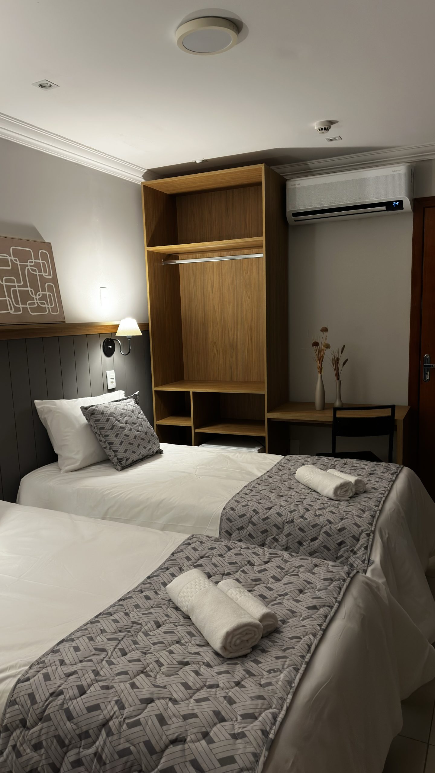 Com ambientes amplos e aconchegantes, o Apartamento Deluxe acomoda até três pessoas e é perfeito para quem deseja mais espaço e conforto. Possui ar-condicionado, frigobar, TV e Wi-Fi, proporcionando uma experiência de hospedagem diferenciada.